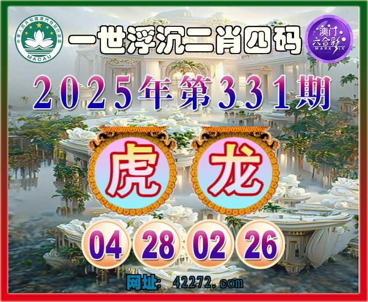 331期:【一世浮沉】 二肖四码【虎龙】【04.28.02.26】开:龙26准见证上榜
