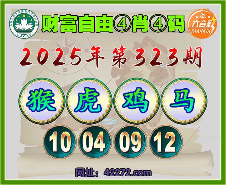 323期:〖财富自由〗 ④肖④码【猴虎鸡马】【10.04.09.12】开:鸡09准见证上榜