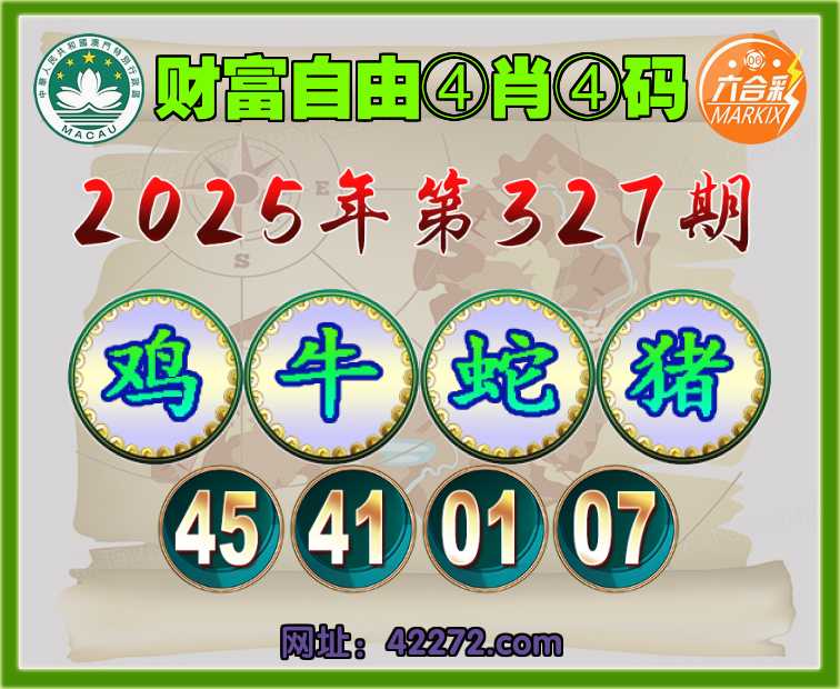 327期:〖财富自由〗 ④肖④码【鸡牛蛇猪】【45.41.01.07】开:蛇37准见证上榜