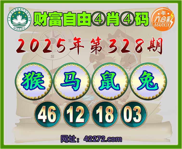 328期:〖财富自由〗 ④肖④码【猴马鼠兔】【46.12.18.03】开:兔03准见证上榜