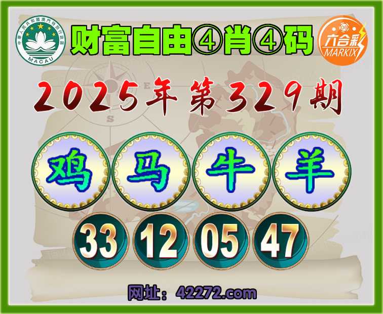 329期:〖财富自由〗 ④肖④码【鸡马牛羊】【33.12.05.47】开:牛17准见证上榜