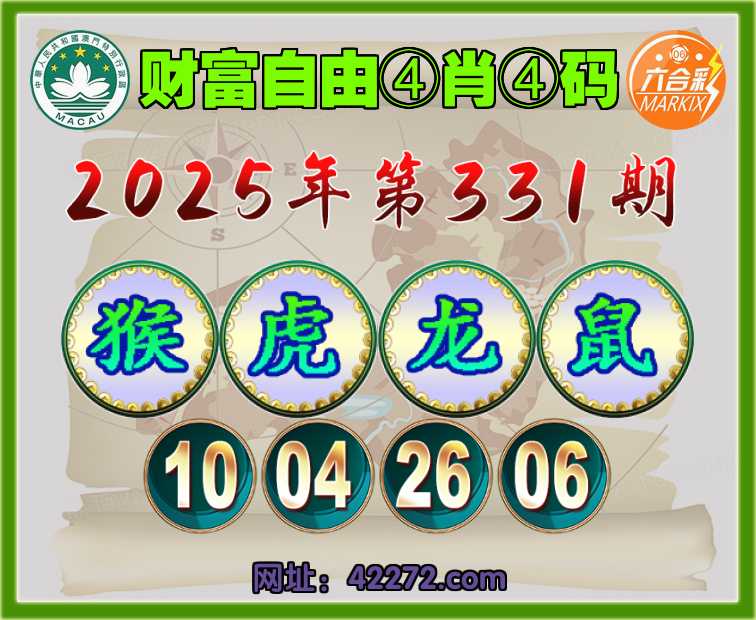 331期:〖财富自由〗 ④肖④码【猴虎龙鼠】【10.04.26.06】开:龙26准见证上榜