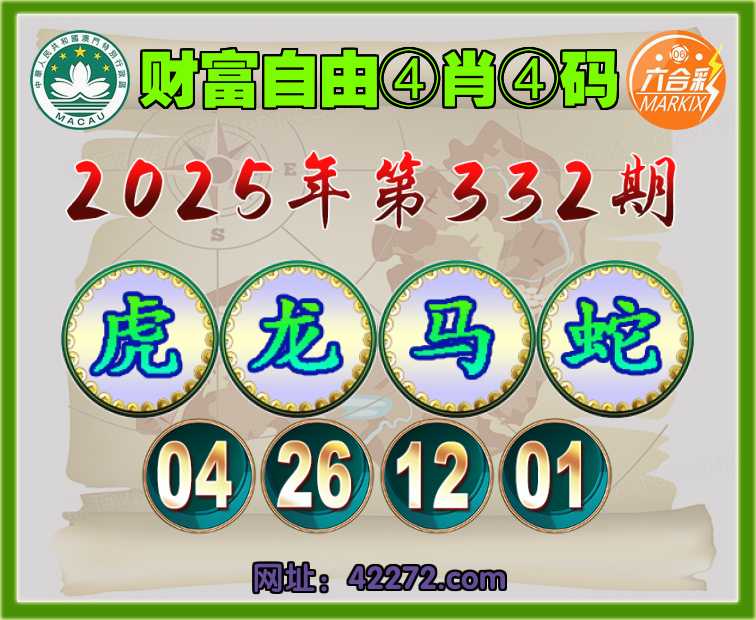 332期:〖财富自由〗 ④肖④码【虎龙马蛇】【04.26.12.01】开:龙26准见证上榜