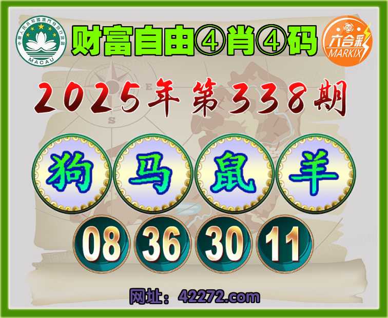 338期:〖财富自由〗 ④肖④码【狗马鼠羊】【08.36.30.11】开:狗08准见证上榜