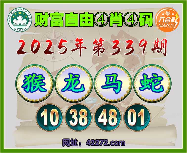 339期:〖财富自由〗 ④肖④码【猴龙马蛇】【10.38.48.01】开:马48准见证上榜